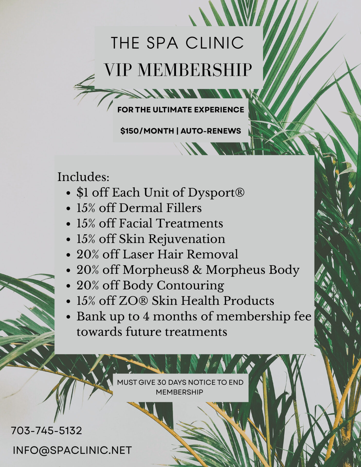 Our VIP Membership is designed for patients who want to stay consistent with their self-care while enjoying exclusive savings on their favorite treatments and products. For $150 per month, your membership gives you access to special pricing, added flexibility, and benefits that make maintaining your results even easier.